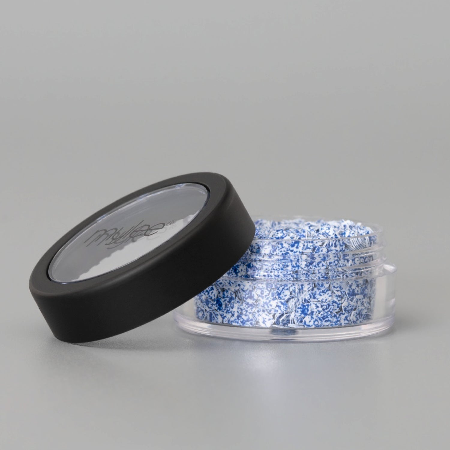 Creating a psychedelic manicure is easier than you think. Prep your nails and apply Mylee base coat as usual. Pick up individual glitter flakes using the Mylee Dotting Tool and position them on the tacky surface of your nail. Finish with Mylee Top Coat or Builder Gel, cure, and you’re good to go!