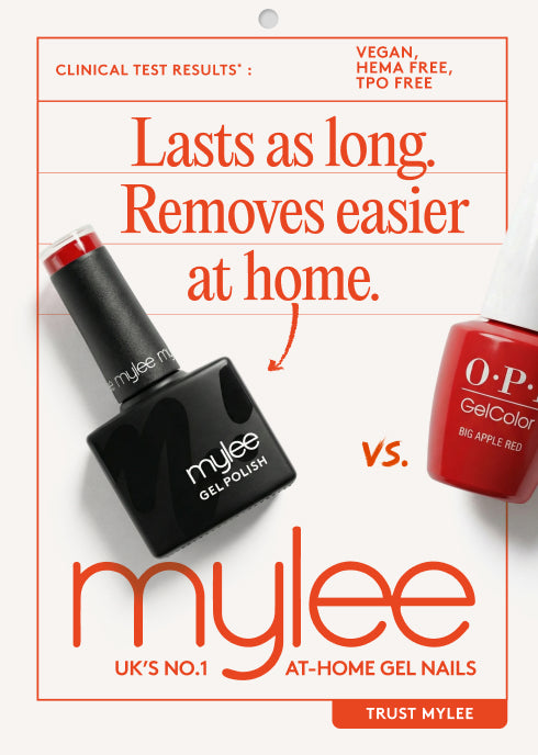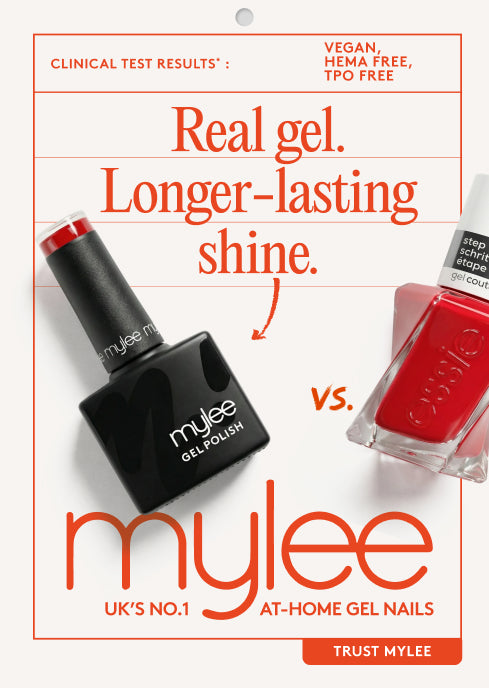 We put Mylee Gel Polish to the test so you can trust that Mylee is the safest gel you can choose. Mylee offers longer lasting shine than a leading nail lacquer brand* and lasts as long as the top leading salon brand*