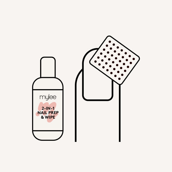 Wipe your nails with a dash of Mylee 2-in-1 Nail Prep & Wipe* on a Mylee Lint Free Wipe* to remove any oils.