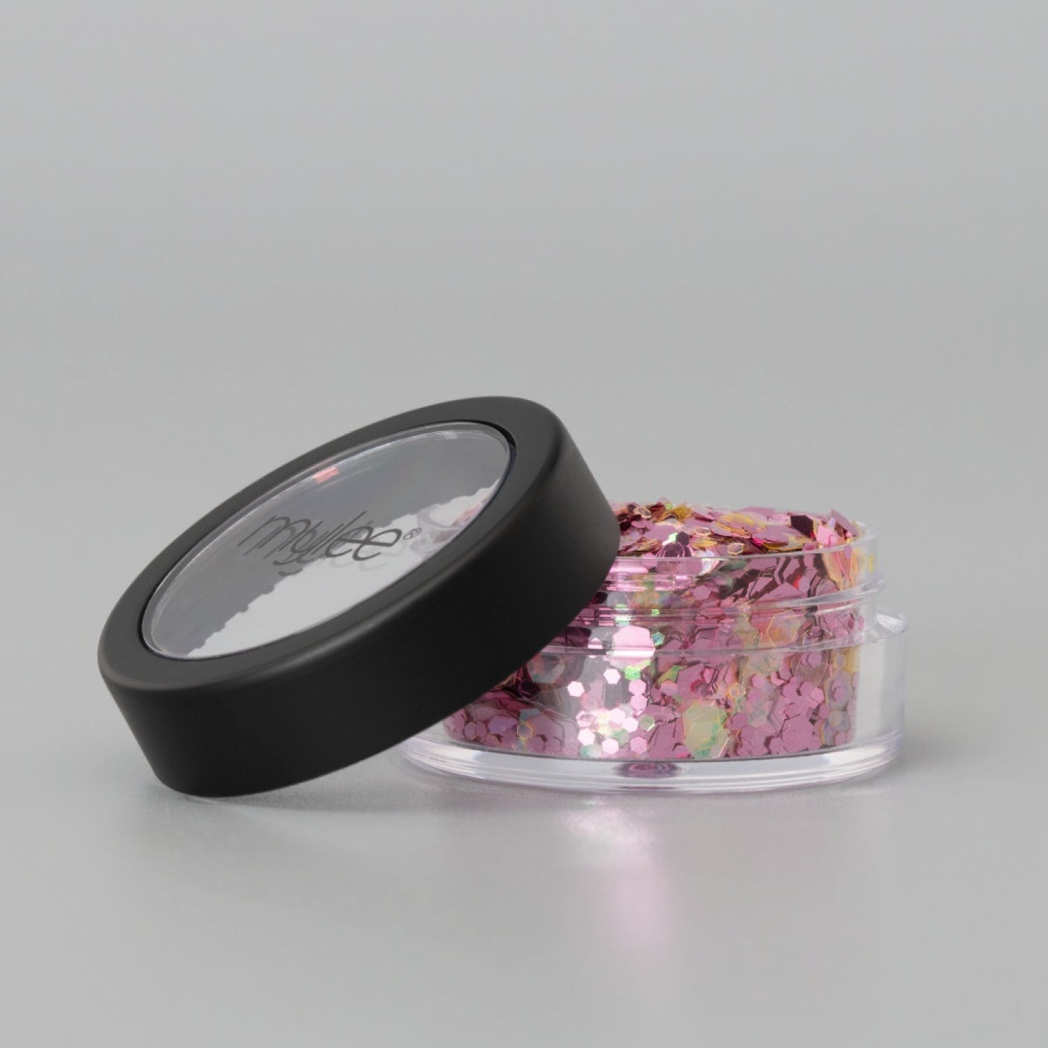 You’ll love the combo of larger pink shapes mixed with smaller gold glitters, designed to reflect your light and give you that outgoing vibe.