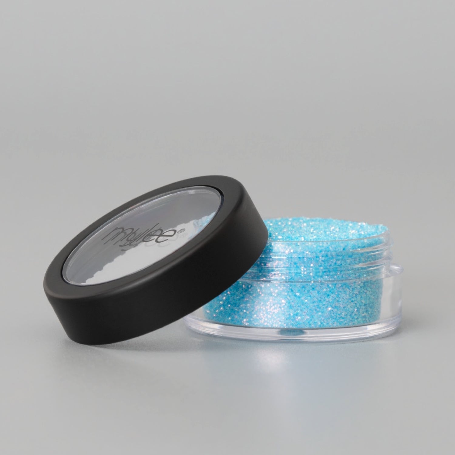 You can apply this sky blue glitter any way you like, whether that’s mixing it in with Mylee Base Coat or using a Glitter Catcher. Don’t forget that it looks great on pedis, too, adding a twinkle to your toes!