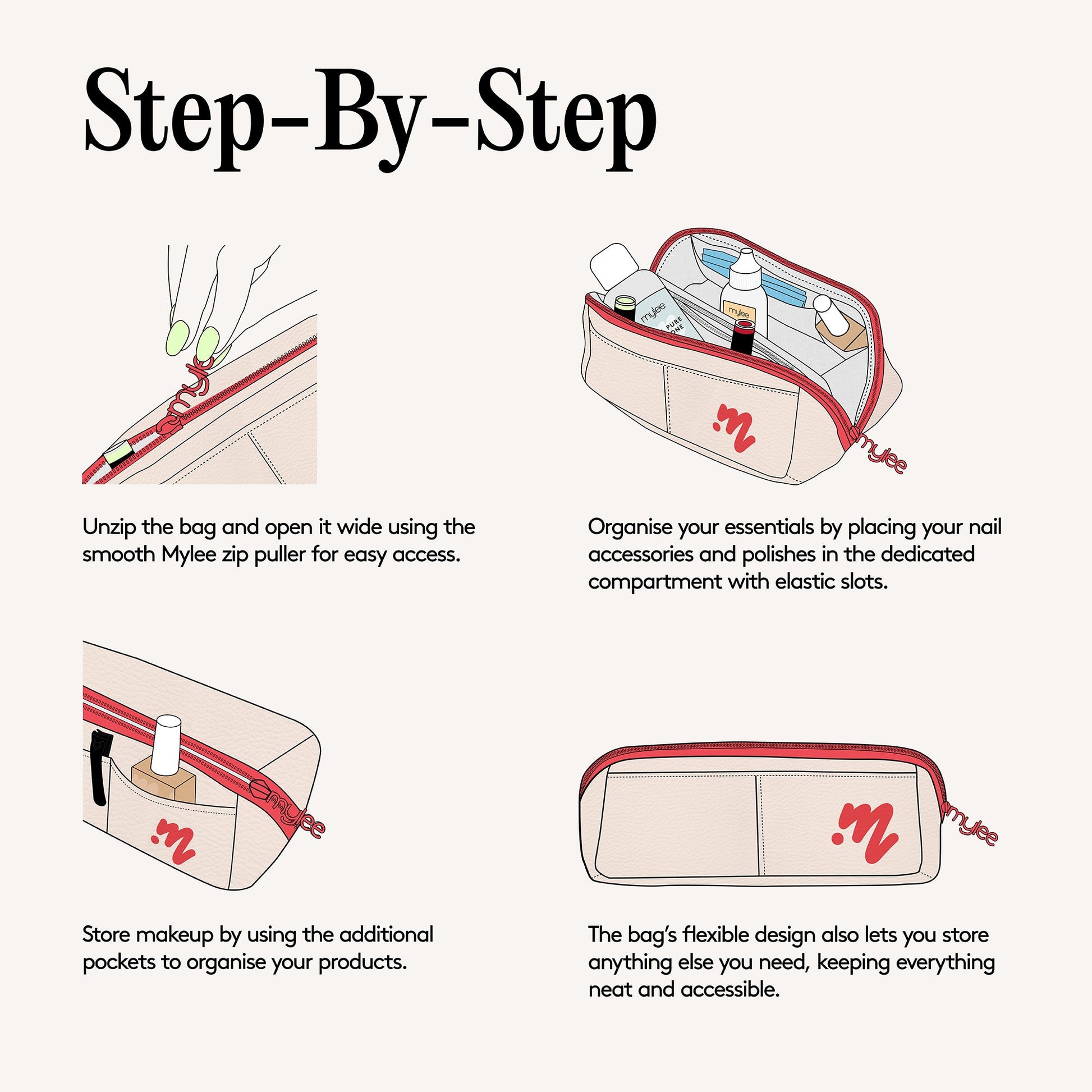 Spacious & organised storage: This makeup bag offers plenty of room to store your beauty essentials. With multiple compartments and elastic straps, it provides a dedicated section for your Mylee gel polish and secure storage for metal tools, making it easy to stay organised whether at home or on the go