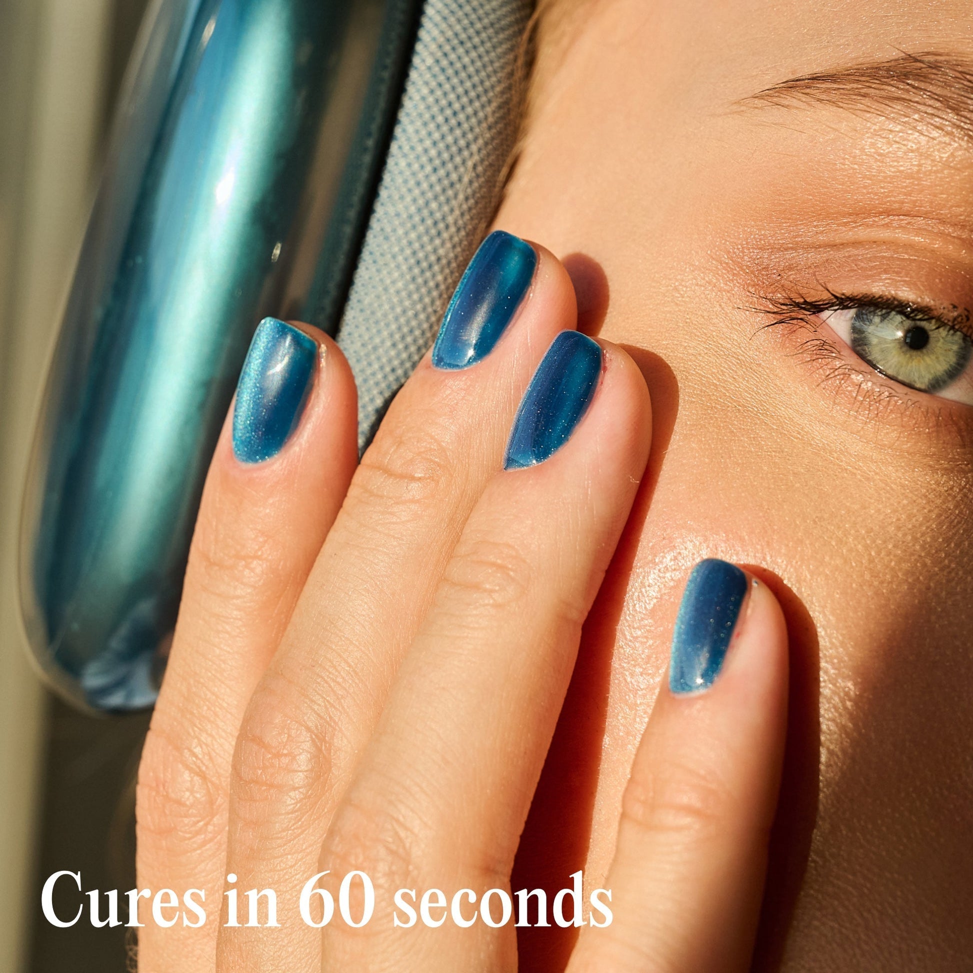 The Deep Dive Gel Polish is a moody, magnetic ocean-blue cat-eye that adds instant depth and drama. It’s intense, striking, and made to go the distance. This polish cures in 60 seconds, resists chips, and stays glossy for up to 3 weeks.