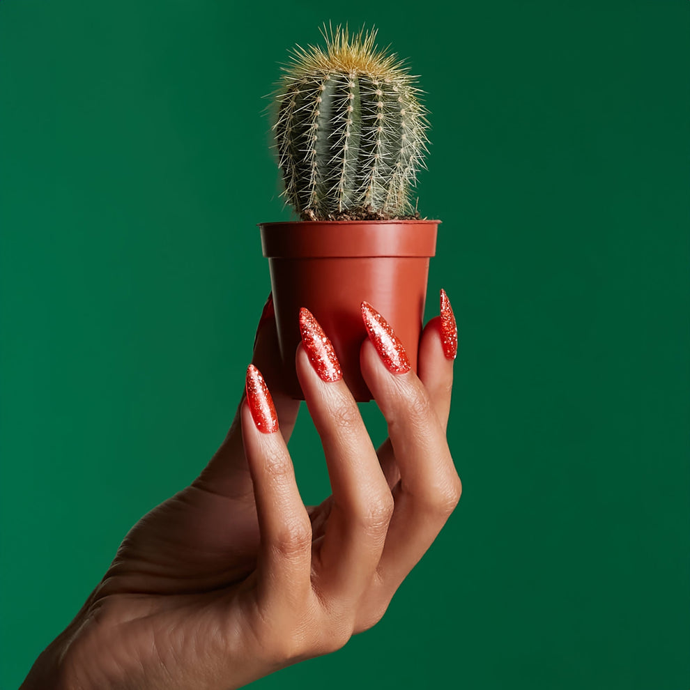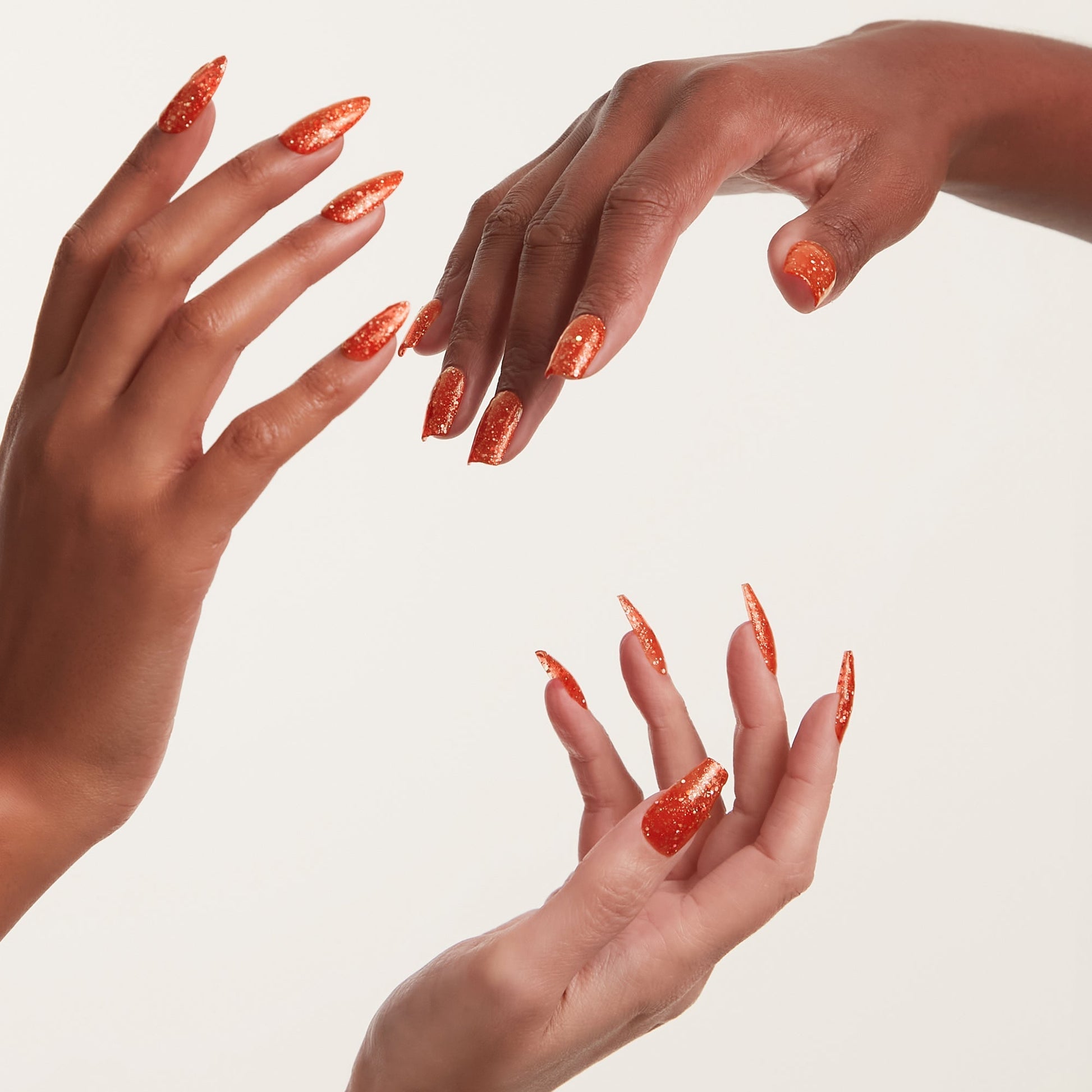 Reach for this shade to celebrate any occasion. Its colourful glitters will lift your spirits, while the sheer orange base will transport you somewhere fun-filled and vibrant the minute you put it on! Burnt orange nails look simply stunning on their own.
