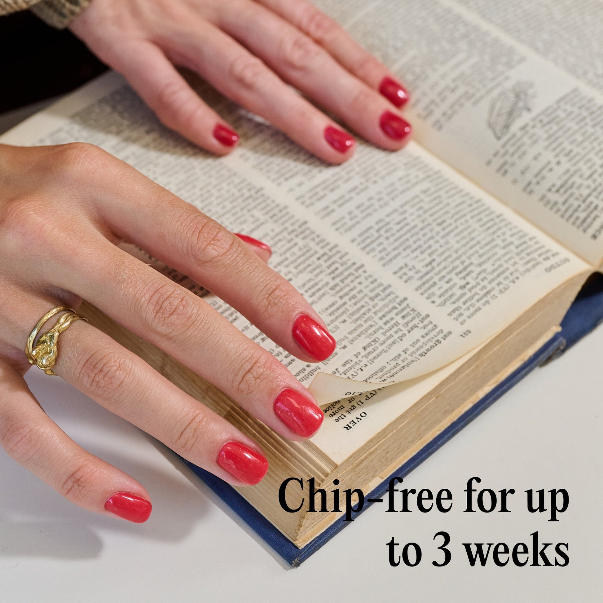 Seal the deal with a Top Coat and cure for 60 seconds. Wash your hands, apply Cuticle Oil, moisturise, and enjoy salon-quality nails for up to 3 weeks!