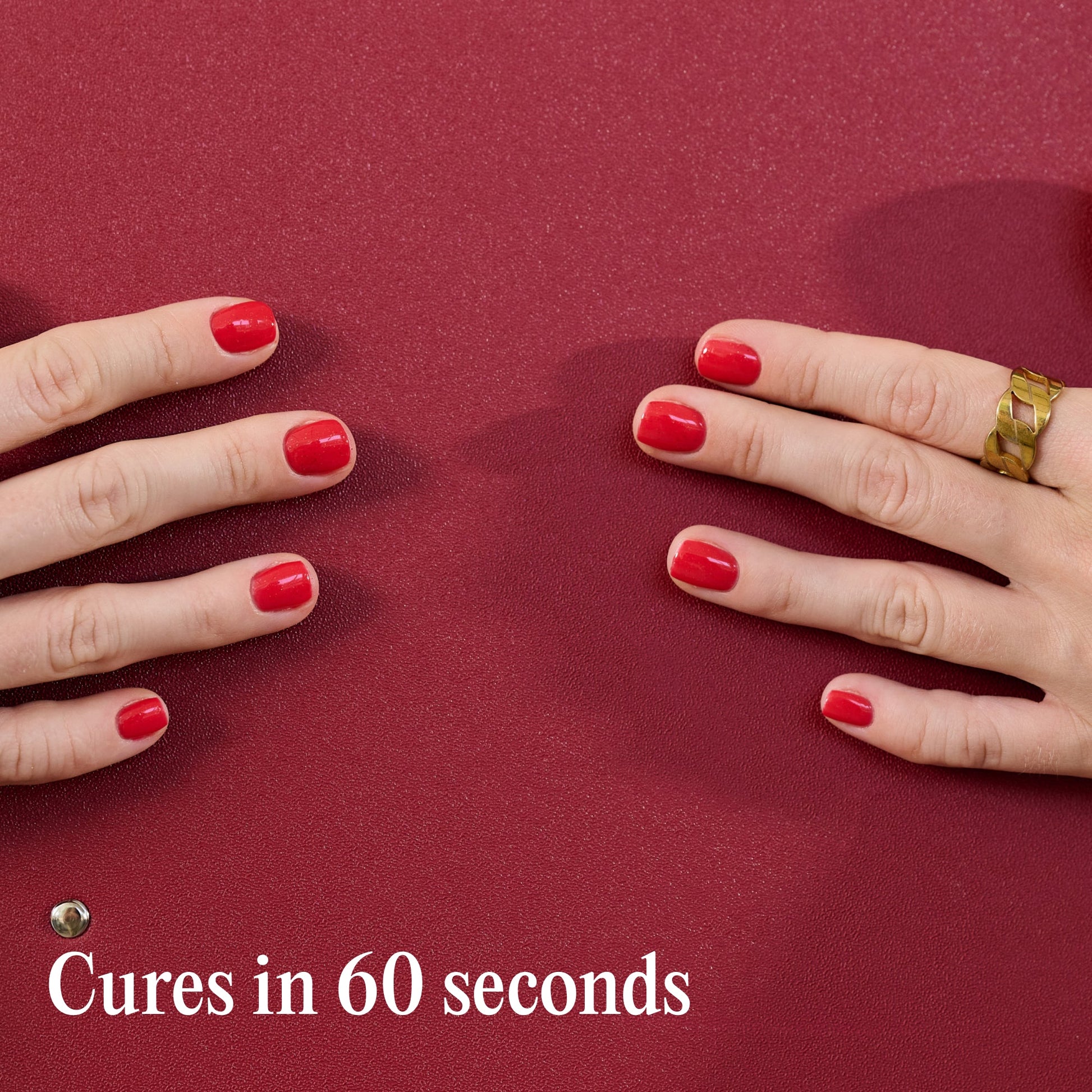 Seal the deal with a Top Coat and cure for 60 seconds. Wash your hands, apply Cuticle Oil, moisturise, and enjoy salon-quality nails for up to 3 weeks!