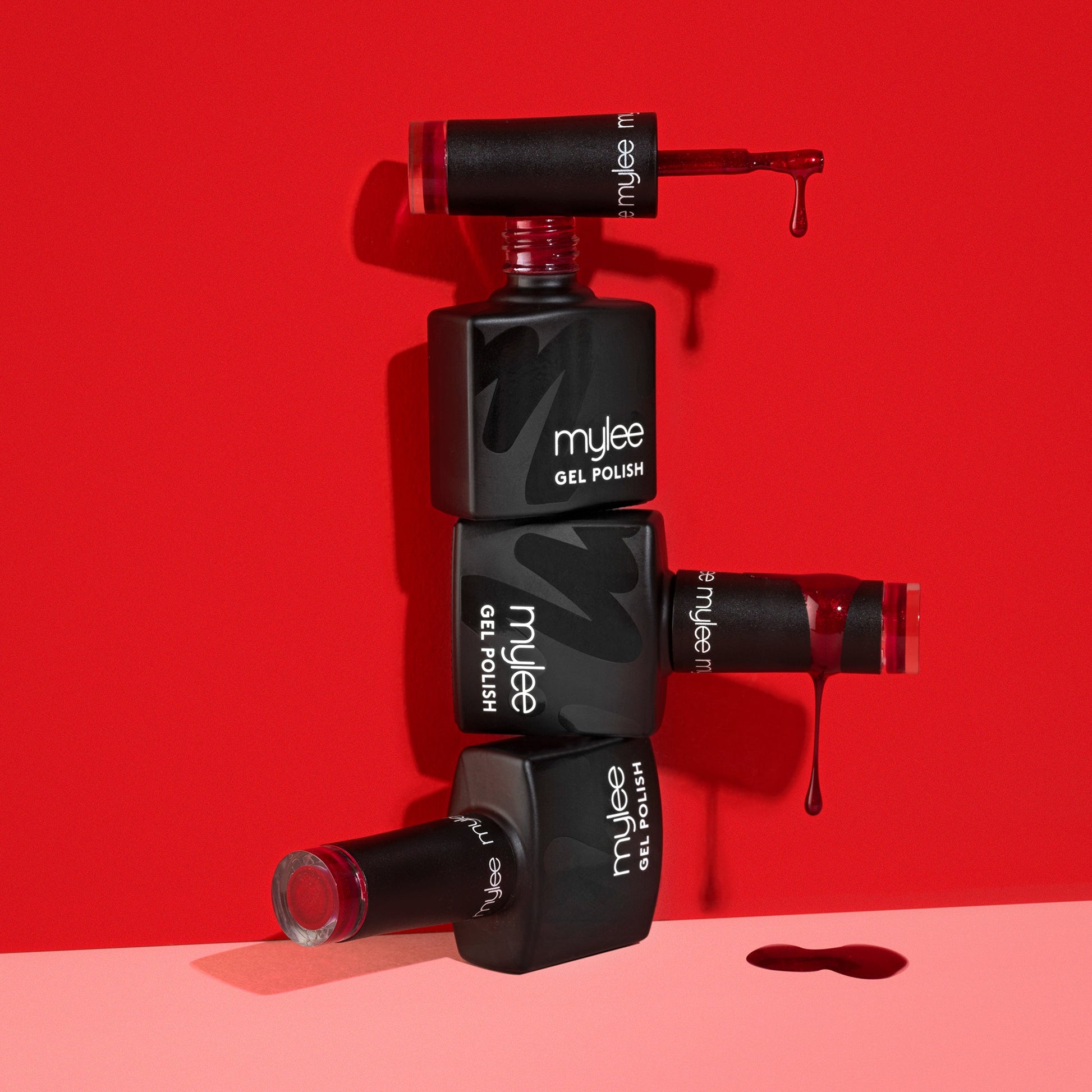 Seal the deal with a Mylee Top Coat* and cure for 60 seconds. If using the regular Mylee Top Coat, remove the tacky layer with 2-in-1 Nail Prep & Wipe on a Lint Free Wipe. Alternatively skip this step and use a Mylee No-Wipe Top Coat! Wash your hands, apply Mylee Nail & Cuticle Oil*, moisturise, and enjoy your salon-quality mani for up to 3 weeks!