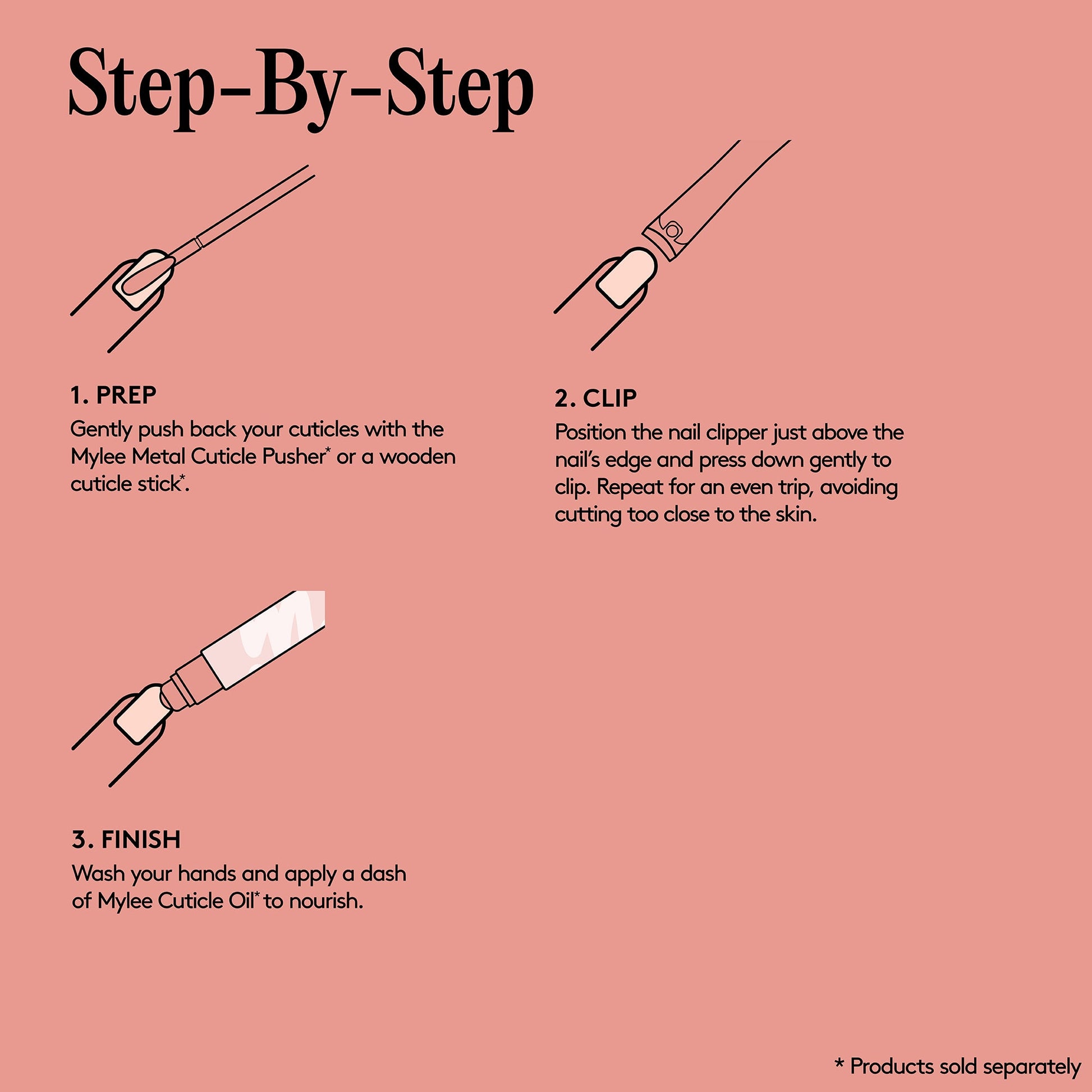 Position the Large Nail Clipper just above the nail’s edge and press down gently to clip. Repeat for an even trim,