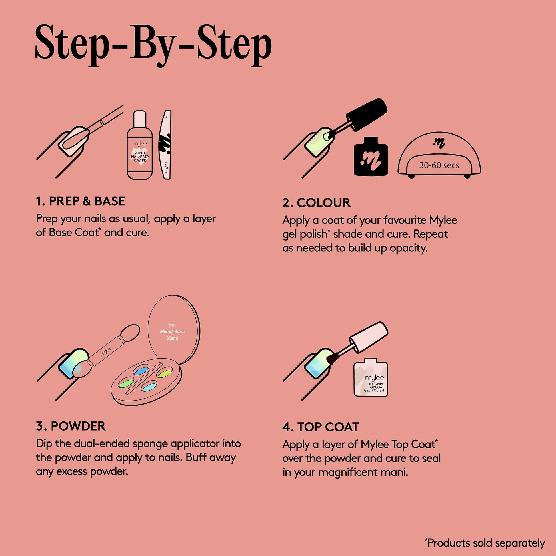 Apply a layer of Mylee Top Coat over the powder and cure to seal in your magnificent mani.