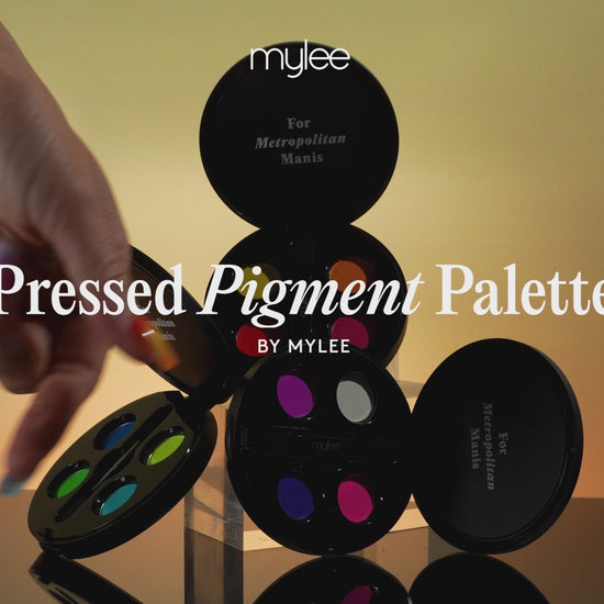 Unleash a rainbow of possibilities with our pressed pigment palettes: sleek eyeshadow-inspired palettes for your nails. Ignite fingertips with vibrant hues like your favourite chrome pigments, creating bold pops or effortless ombre masterpieces.
