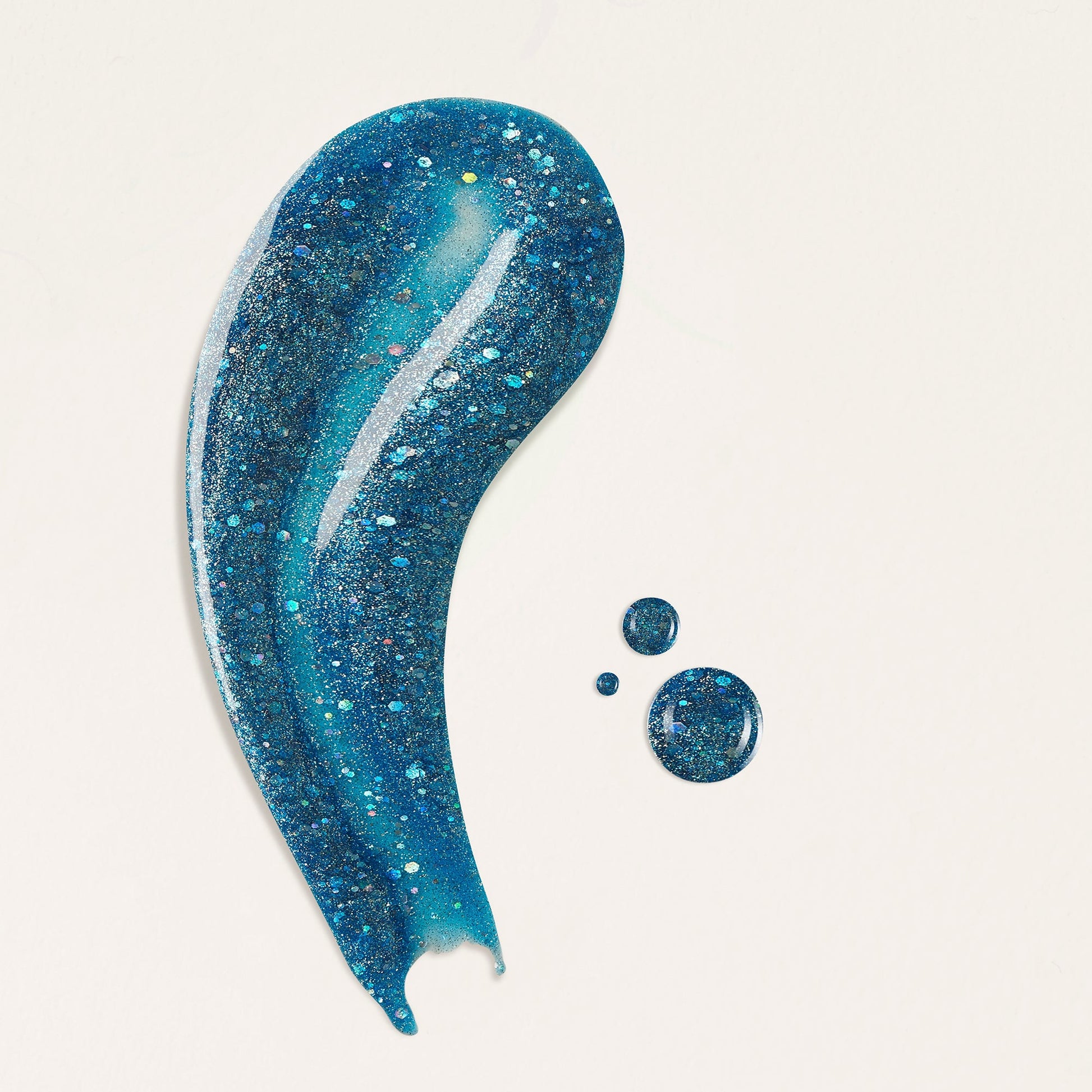 This royal blue gel polish feels like a cool dip in the ocean. Its deep blue base tone contrasts against a mix of fine and chunky holographic silver glitter, creating the image of water refractions on the sea.