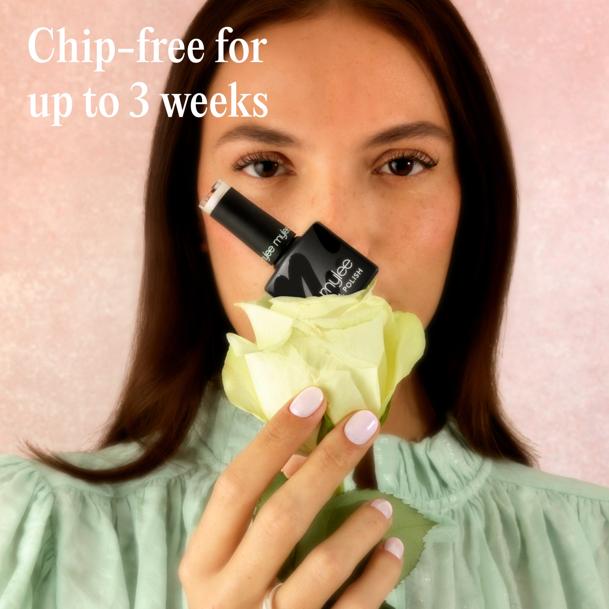 Our Pearl Drop shade is a seashell white kissed with a violet sheen, giving it an opalescent glow. Understated yet luminous - it’s like catching light through clouds. Each of our shades cure in 60 seconds and stays glossy, chip-free, and salon-fresh for up to 3 weeks.