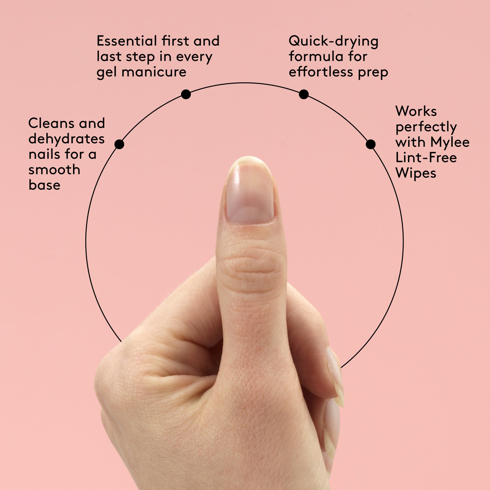 Mylee Prep & Wipe is perfect for use either at home or in the salon…think of it as your manicure kit essential! For best results, use with Mylee Lint Free Wipes to keep your nails fuzz free!