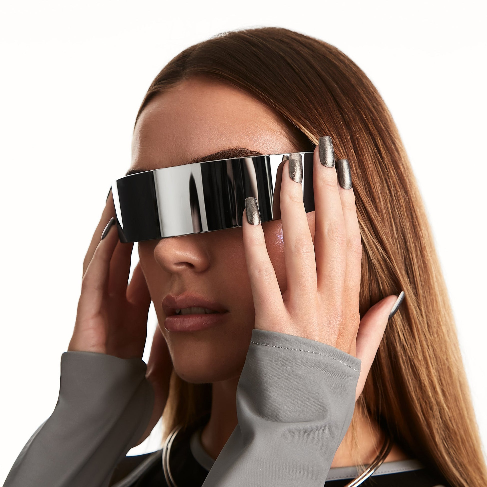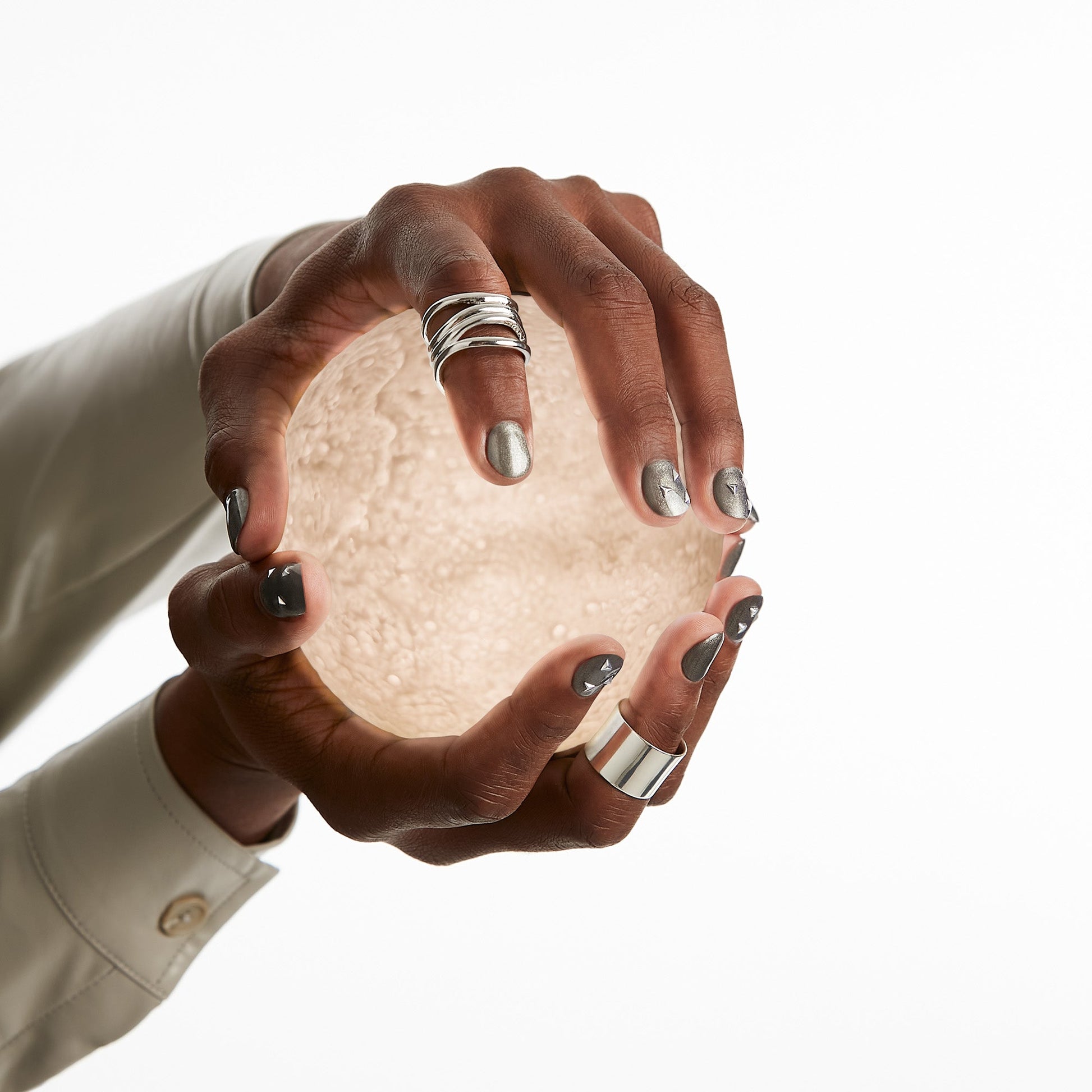 This dark grey nail polish with shimmering silver glitter is designed to look like the gun metal grey of a sci-fi spaceship. It’ll give your mani a futuristic, out of this world finish.