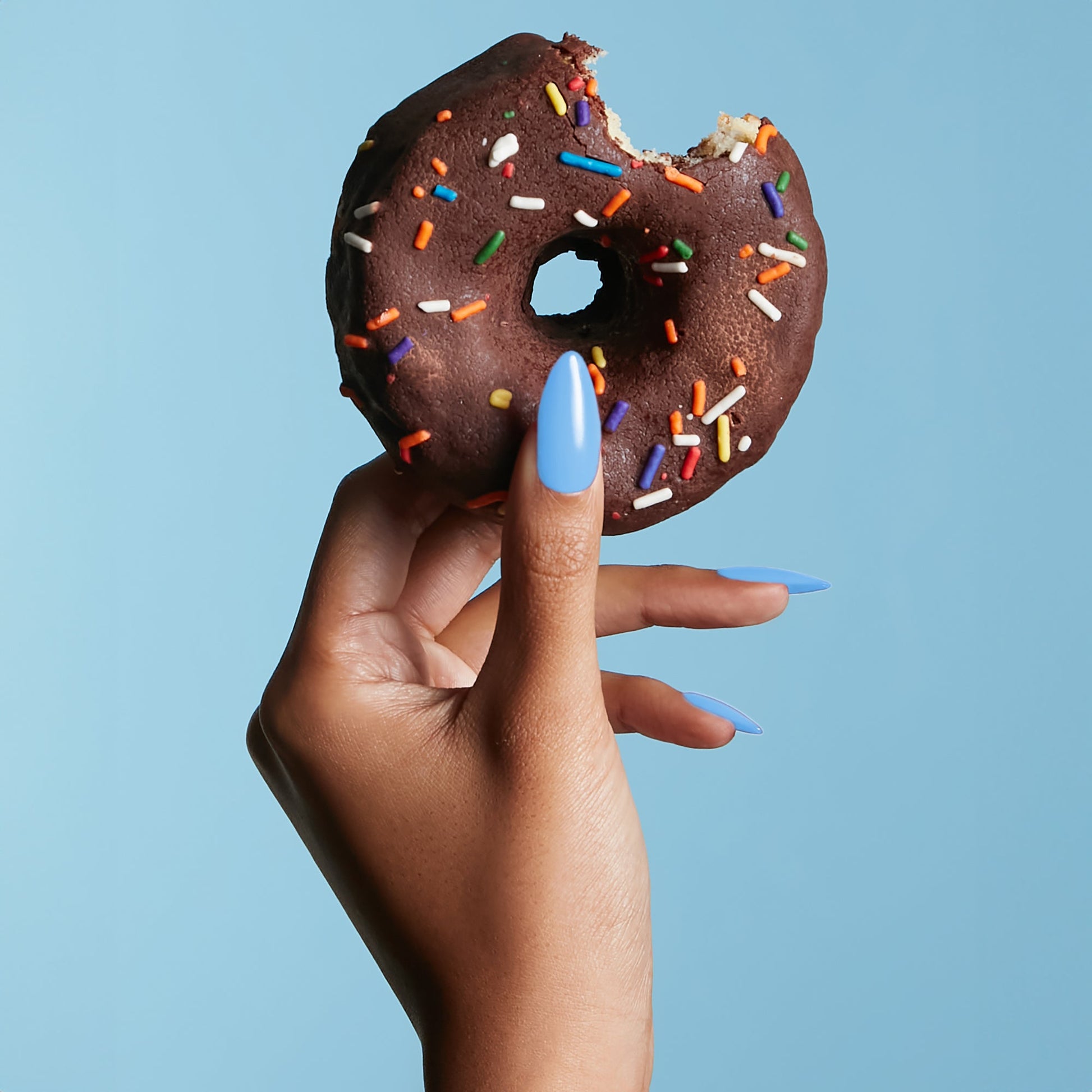 Sky blue nail polish looks stunning with either gloss or matte top coat. Use it as a single colour or team it with other pastel shades to create an ice-cream-inspired manicure!