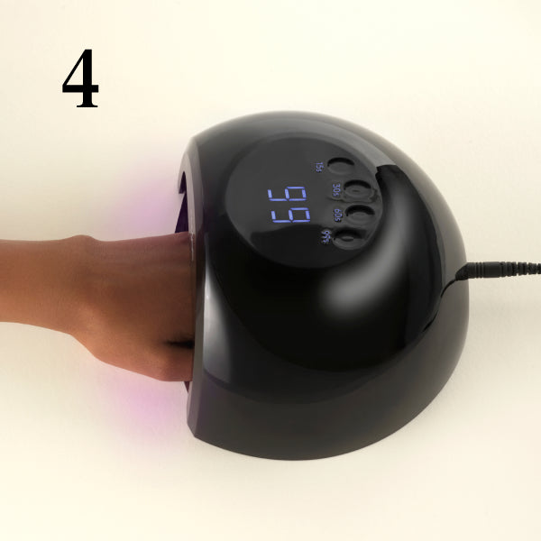 Apply a thin layer of Mylee Clear 5-in-1 Builder Gel* to your nails and cure for 60 seconds using a Mylee LED Lamp* to lock it in.