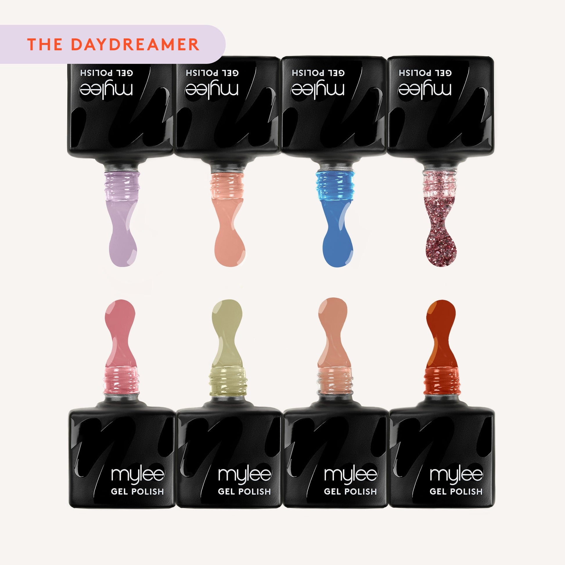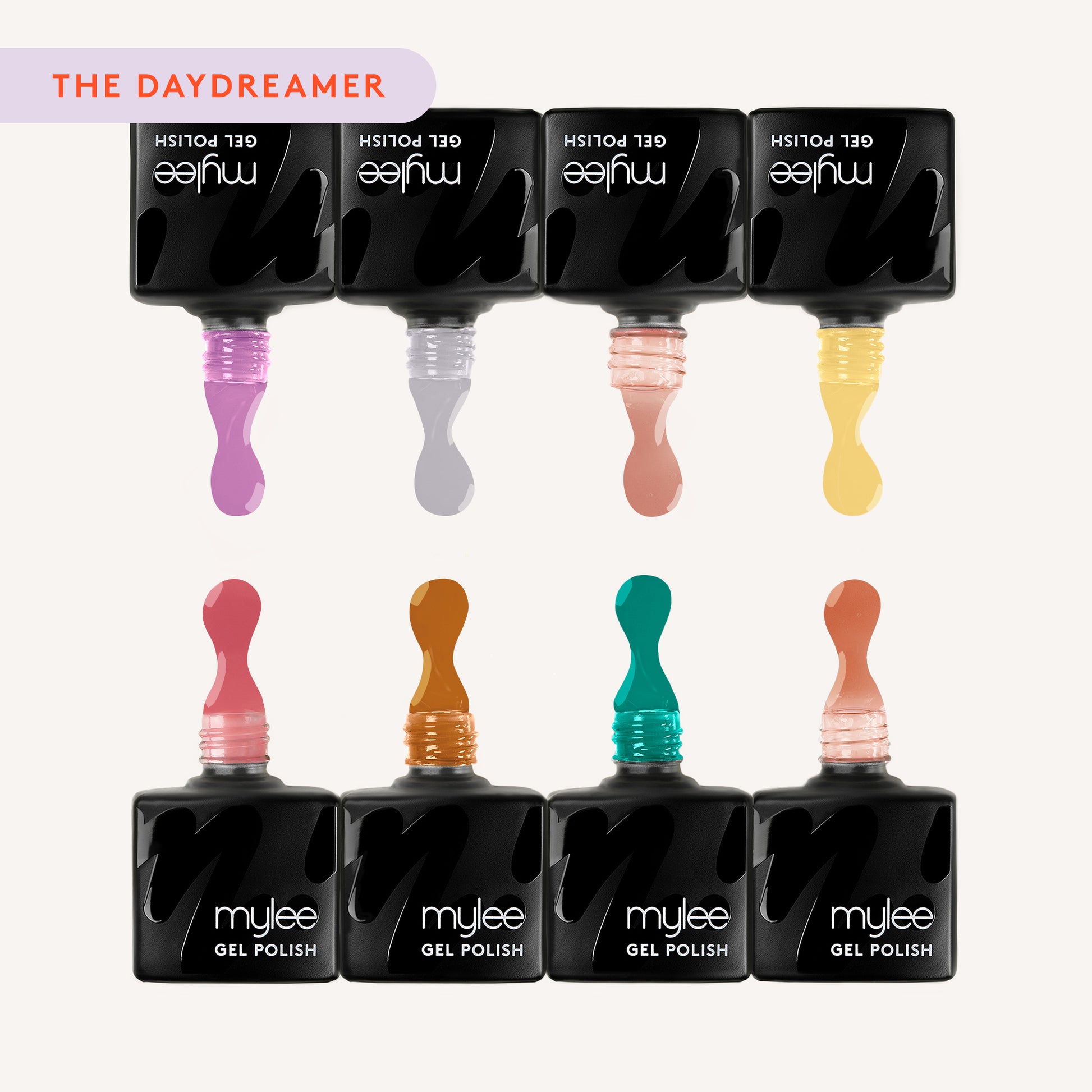 The Daydreamer -Caramel - a warm caramel nude, You're a Peach - pinky-peach shade, Quite Delightful - a pale lilac shade, Gelato - pale pistachio, Copper Shine - sheer rose gold, Flushed cheeks - a rosy pink, Forget Me Not - bright blue, Rust - A red/orange toned warm brown.