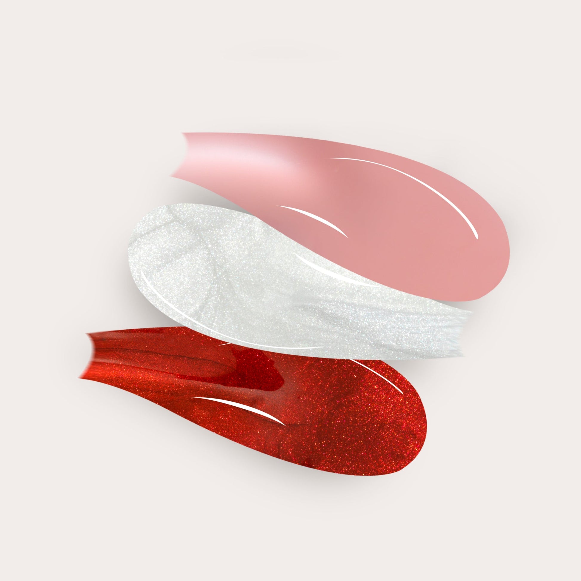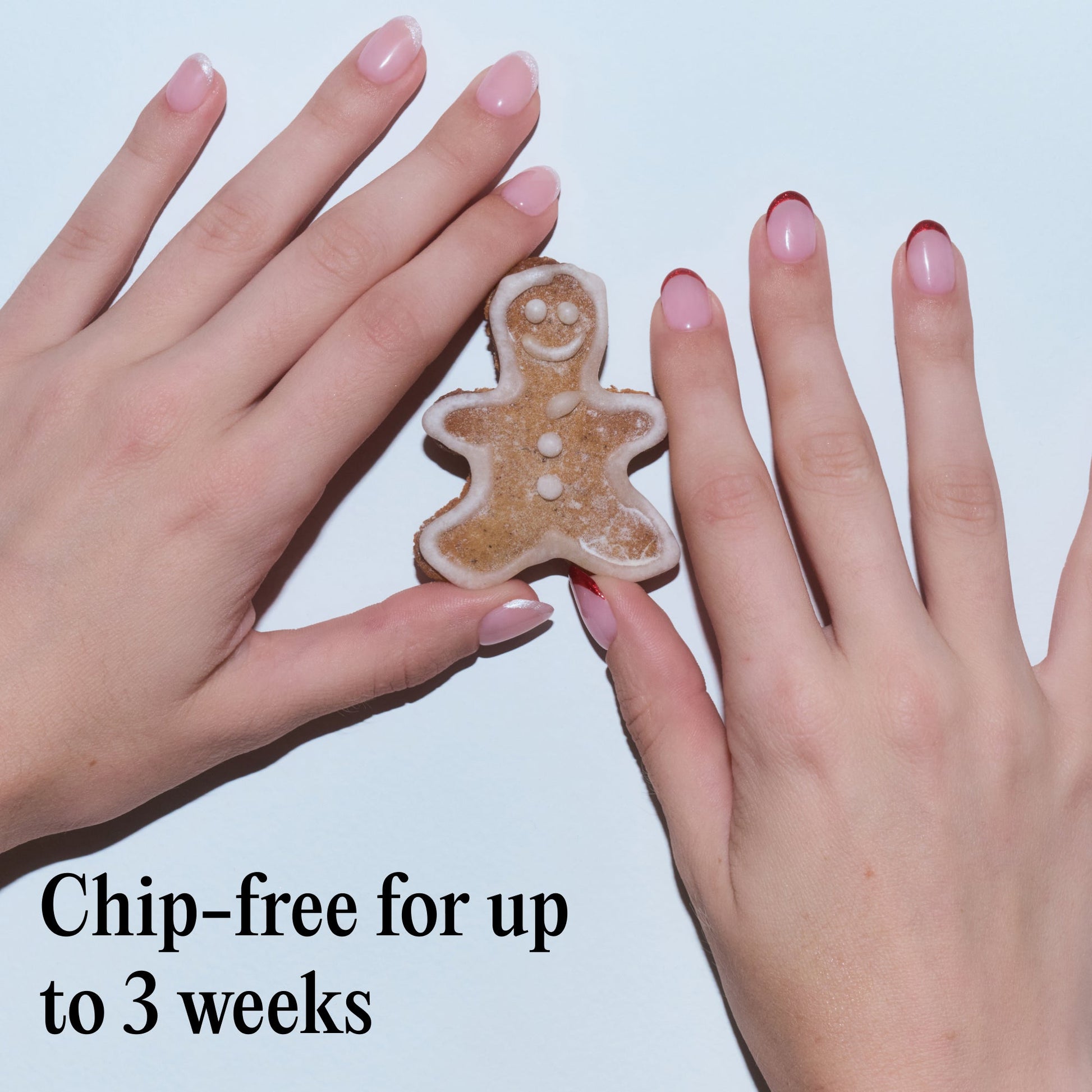Messy baking? Nailed it. This trio is a playful take on a pearly French finish. XOXO gives you a sheer pink base, while Vanilla Frosting, a metallic silver and Whisked Away, a bold red metallic are your icing on top, with a thicker consistency. Use the stamper for crisp, clean tips. Each of our shades cures in 60 seconds and stays glossy, chip-free, and salon-fresh for up to 3 weeks.